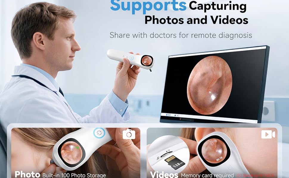 • ✨ Clear HD Vision: Enjoy detailed visuals through a 1080P HD camera with four LED lights and three brightness levels. This digital Oto-Scope captures clear and bright images, perfect for viewing small areas, objects, and fine details in daily home or office use.
