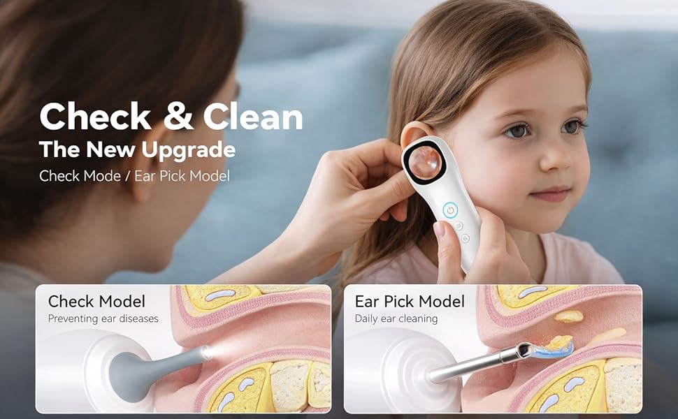 • ⚙️ Dual Mode Function: Switch between Check Mode and Cleaning Mode as needed for different activities. The dual-mode feature makes this Oto-Scope convenient for routine use, offering precise viewing and versatile performance for everyday tasks.